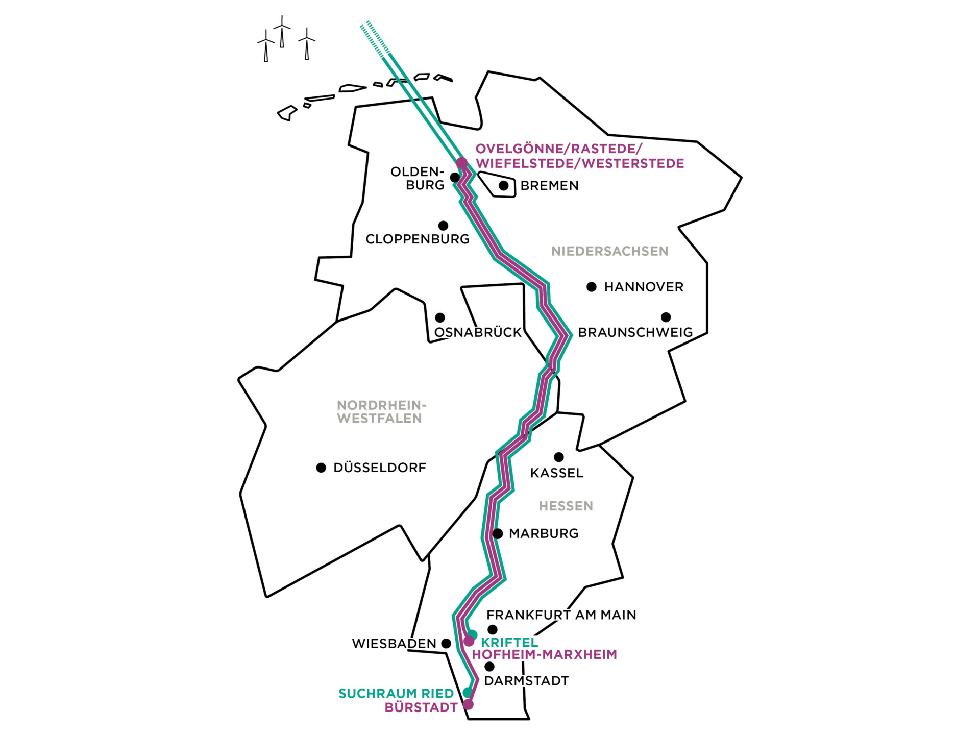 Der Rhein-Main-Link ist eines der Schlüsselprojekte für den Umbau der Energieinfrastruktur in Deutschland. Die geplante rund 600 Kilometer lange HGÜ-Erdkabeltrasse wird ab 2033 klimaneutral erzeugten Strom von Niedersachsen durch Nordrhein-Westfalen nach Hessen transportieren. Die Leitung ist mit einer Übertragungsleistung von 4 x 2 Gigawatt geplant und stellt damit eine der leistungsstärksten Stromverbindungen Deutschlands dar.